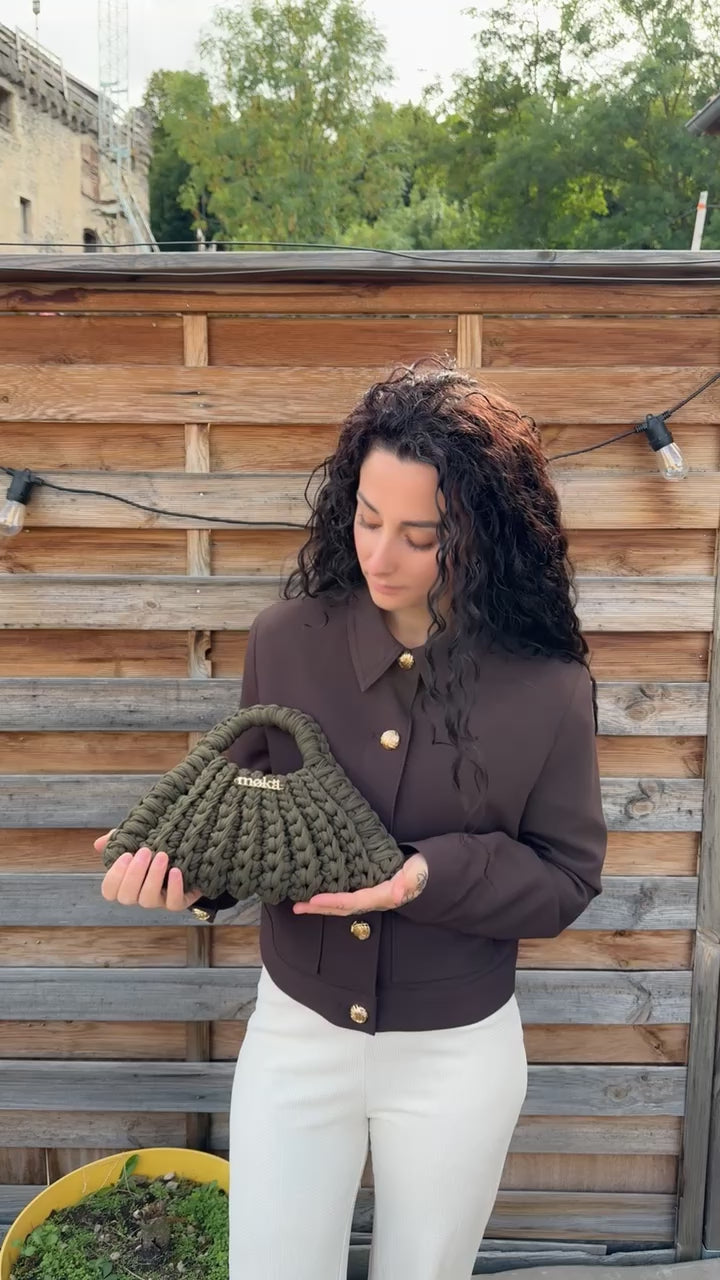 Réalisé en fil de T-shirt recyclé, il séduit par son format compact et son style unique.