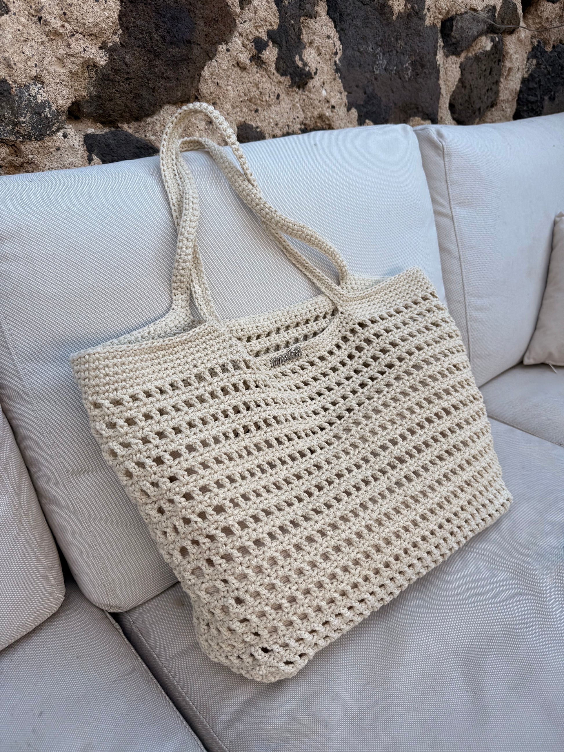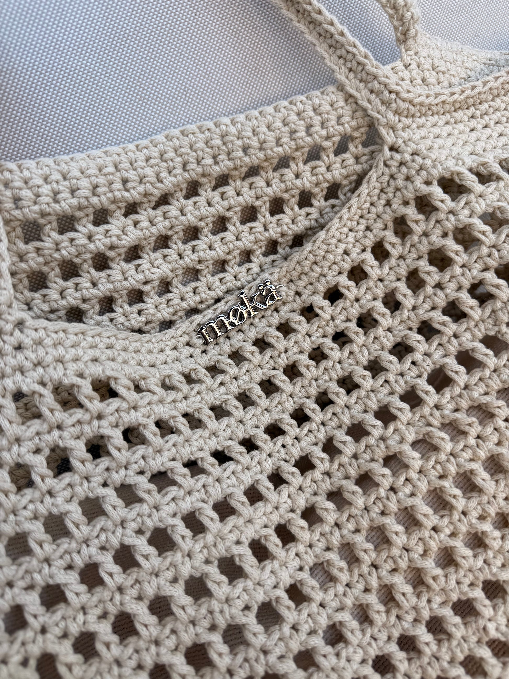 Entièrement confectionné en macramé crocheté, il allie authenticité et souplesse pour un usage quotidien.