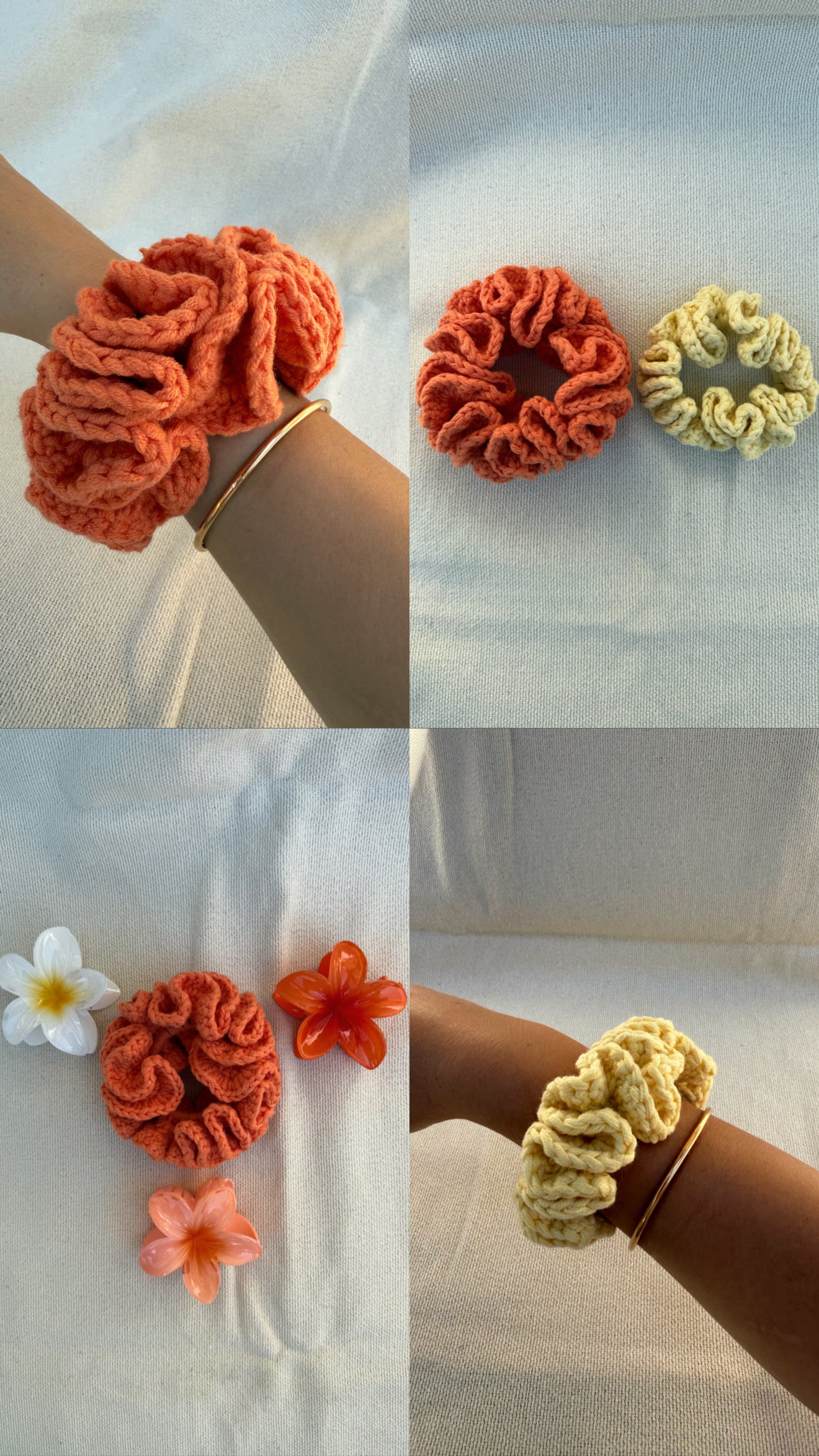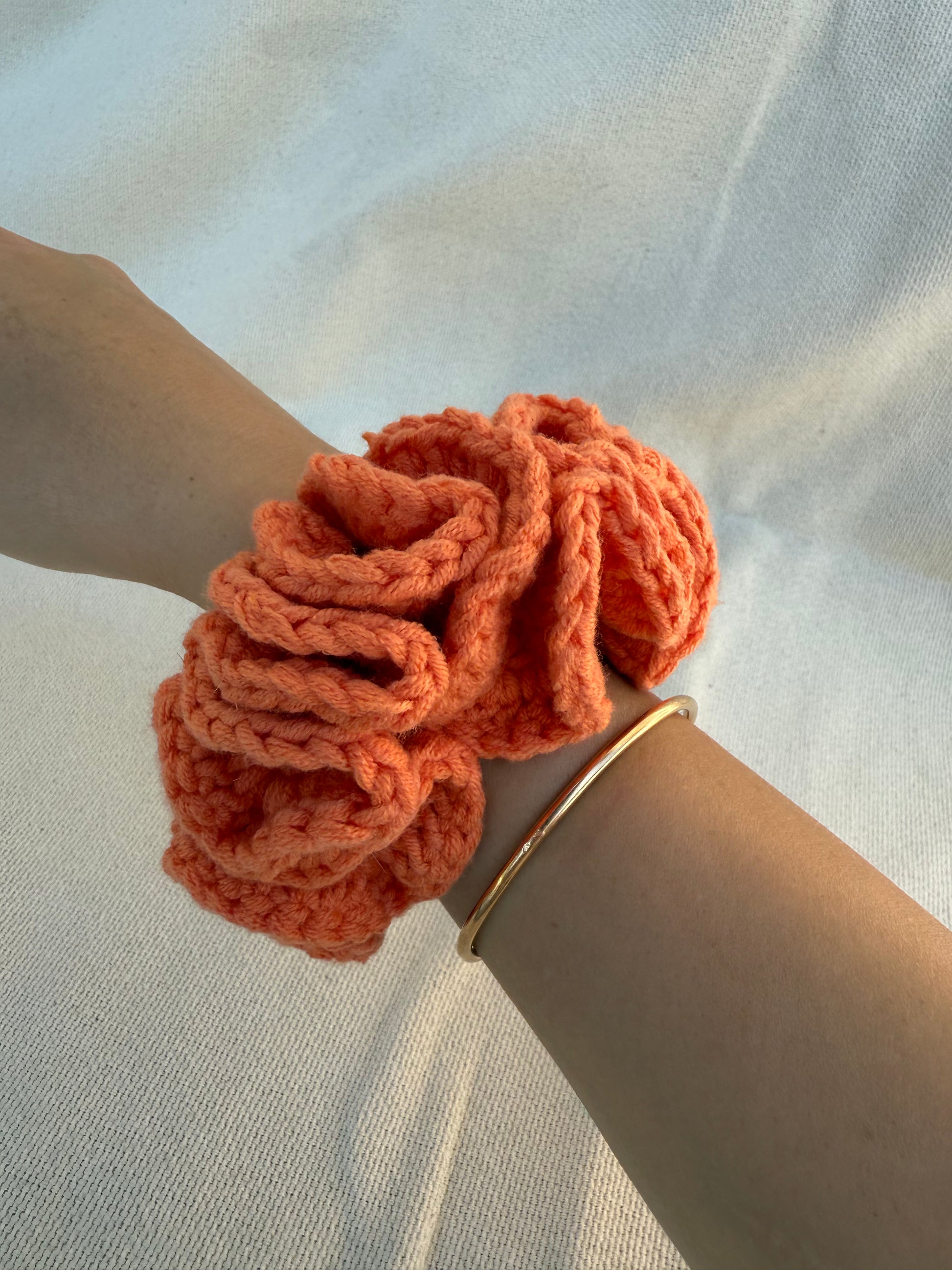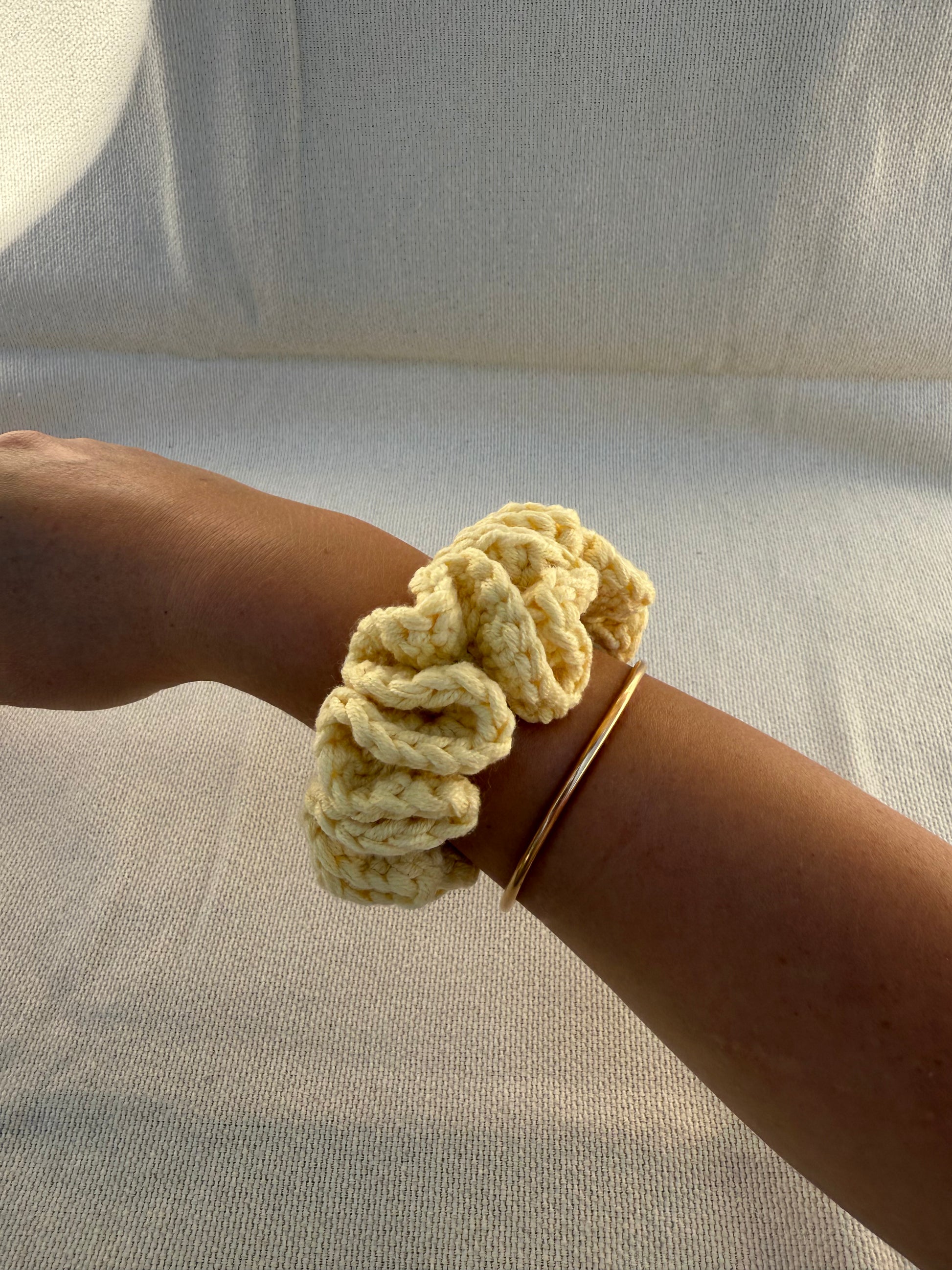 Accessoire crocheté à la main, au style doux et volumineux, pour sublimer toutes les chevelures — ou les poignets.