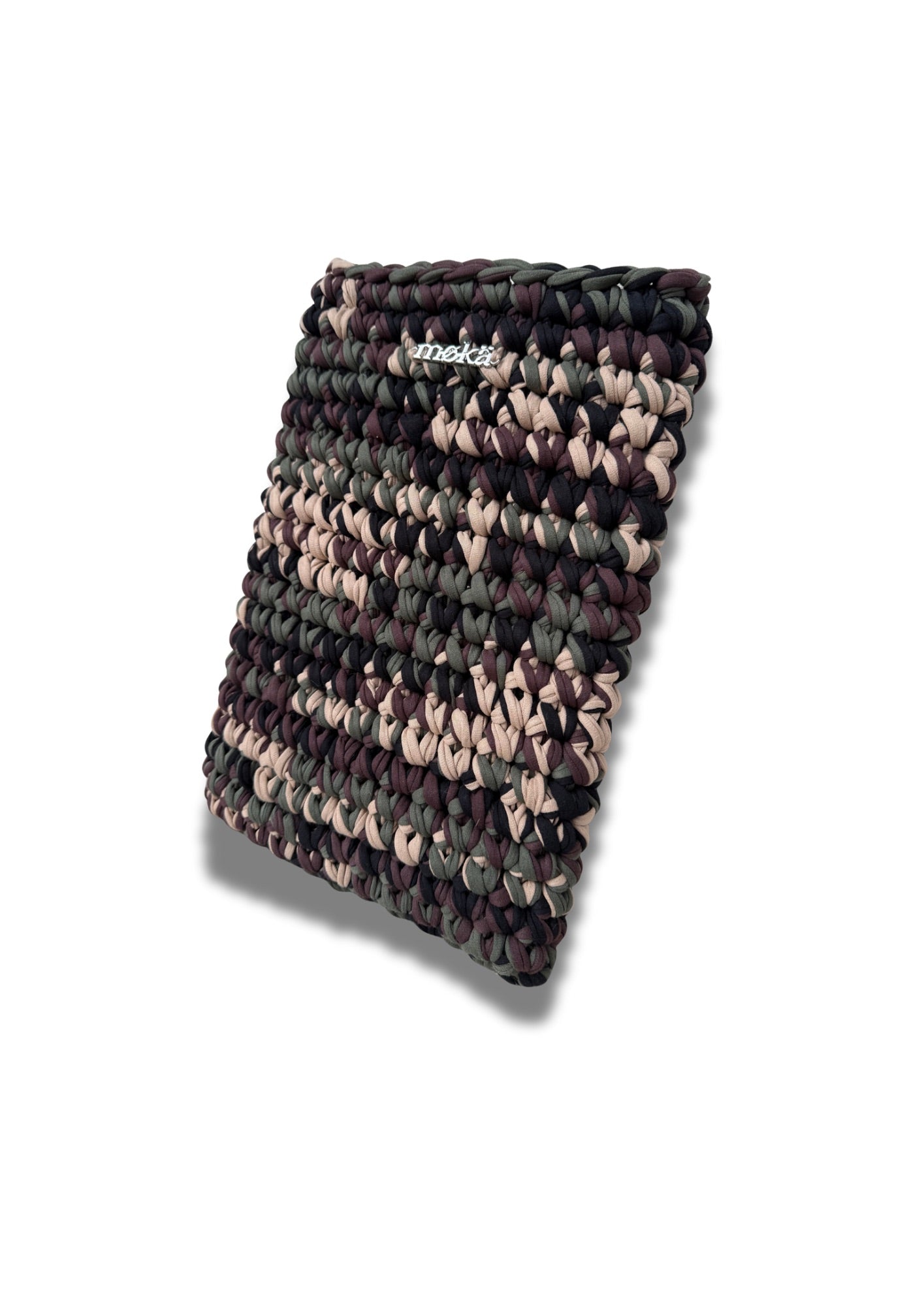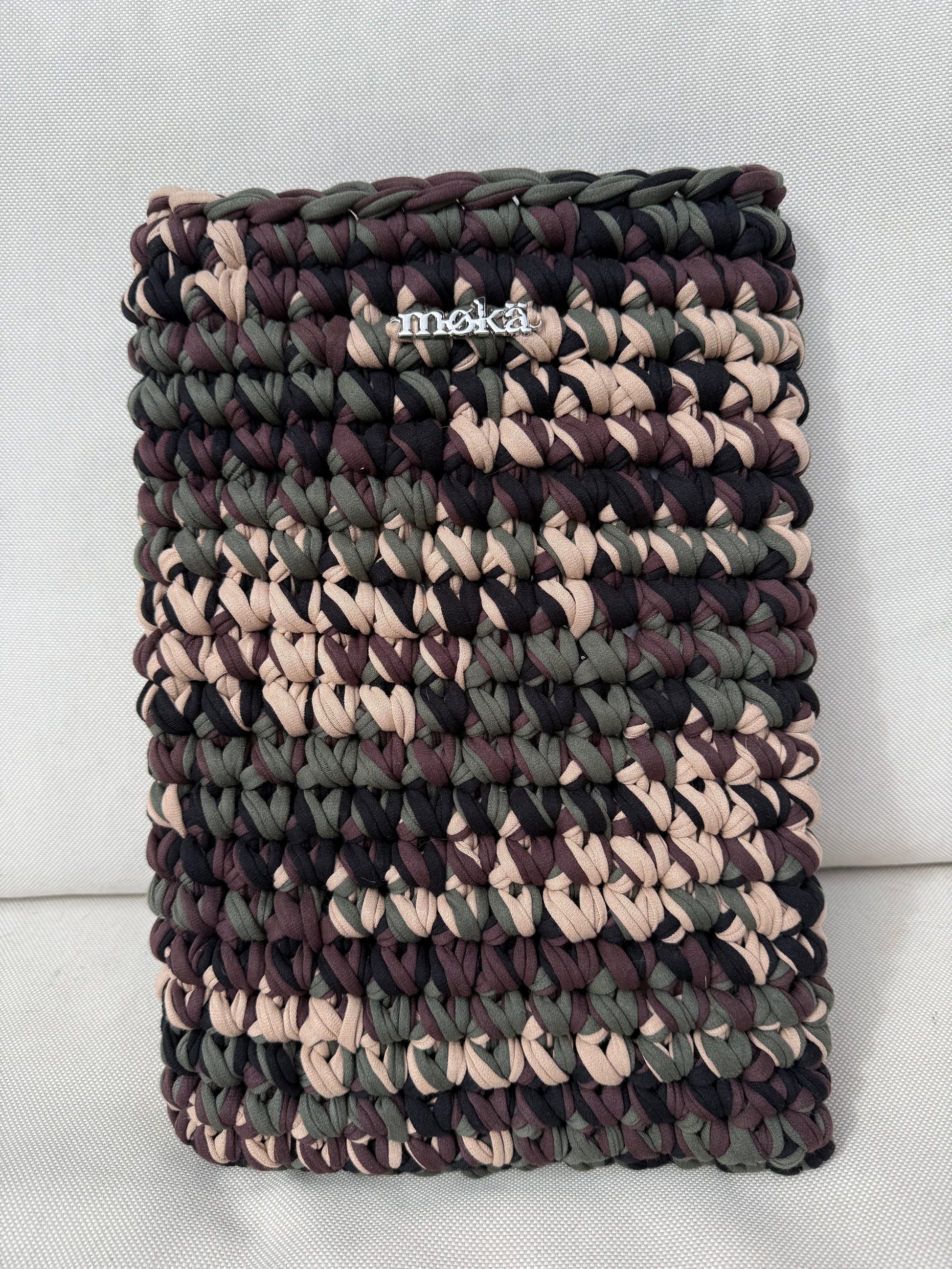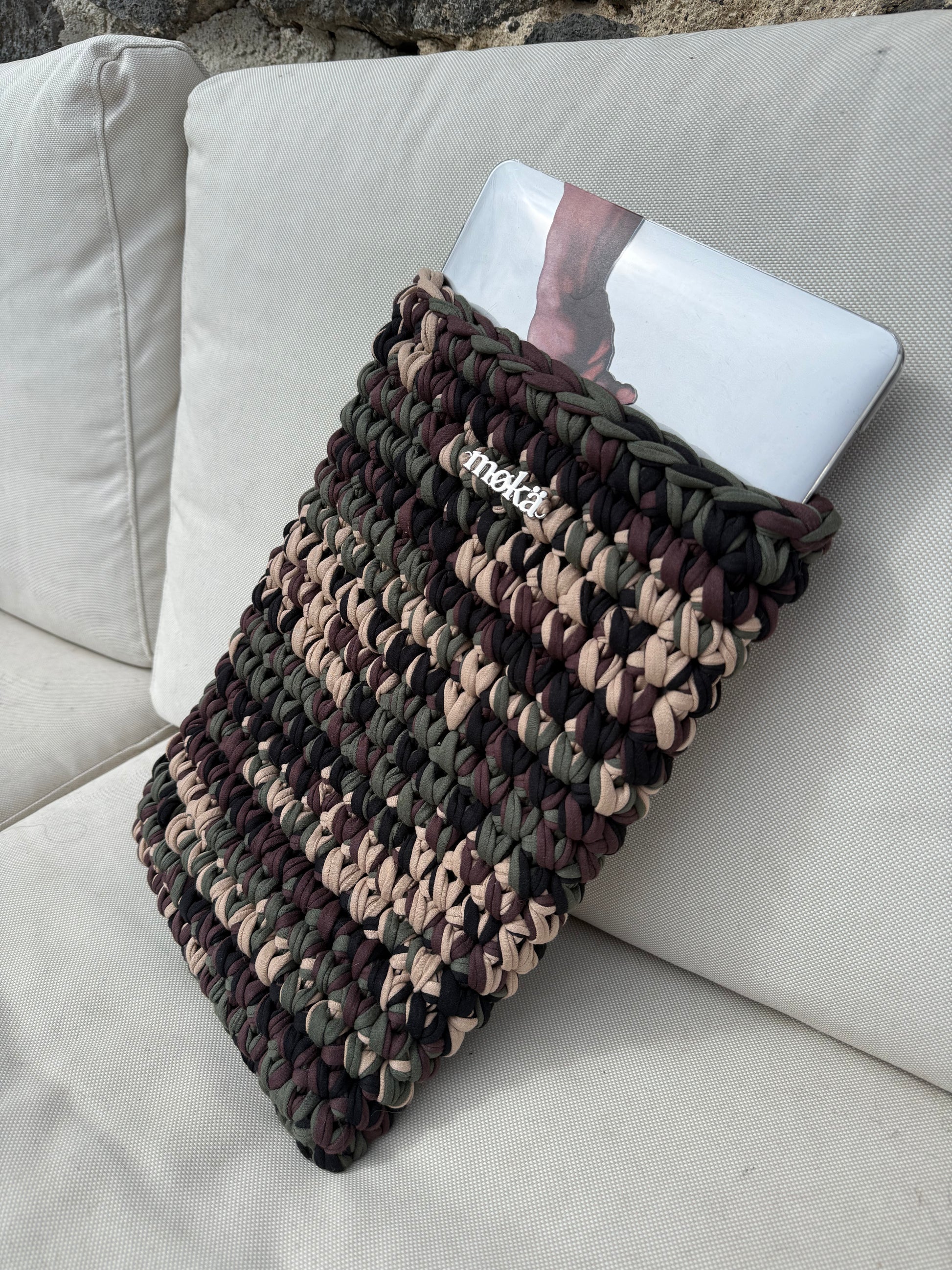 Son tressage en fil T-shirt recyclé lui confère solidité et élégance, pour transporter votre ordinateur ou tablette en toute sécurité.
